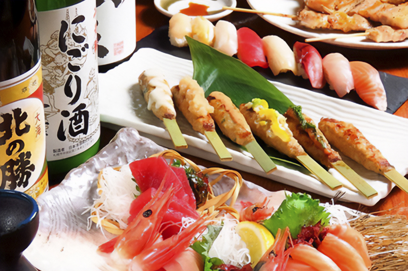 焼鳥・お刺身など、なんと全品食べ飲み放題が可能な【全品食べ飲み放題コース】税込4,000円!