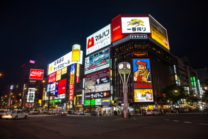 店内ホールからは「すすきの」交差点の夜景が一望でき、内装は賑やかで楽しい雰囲気です。