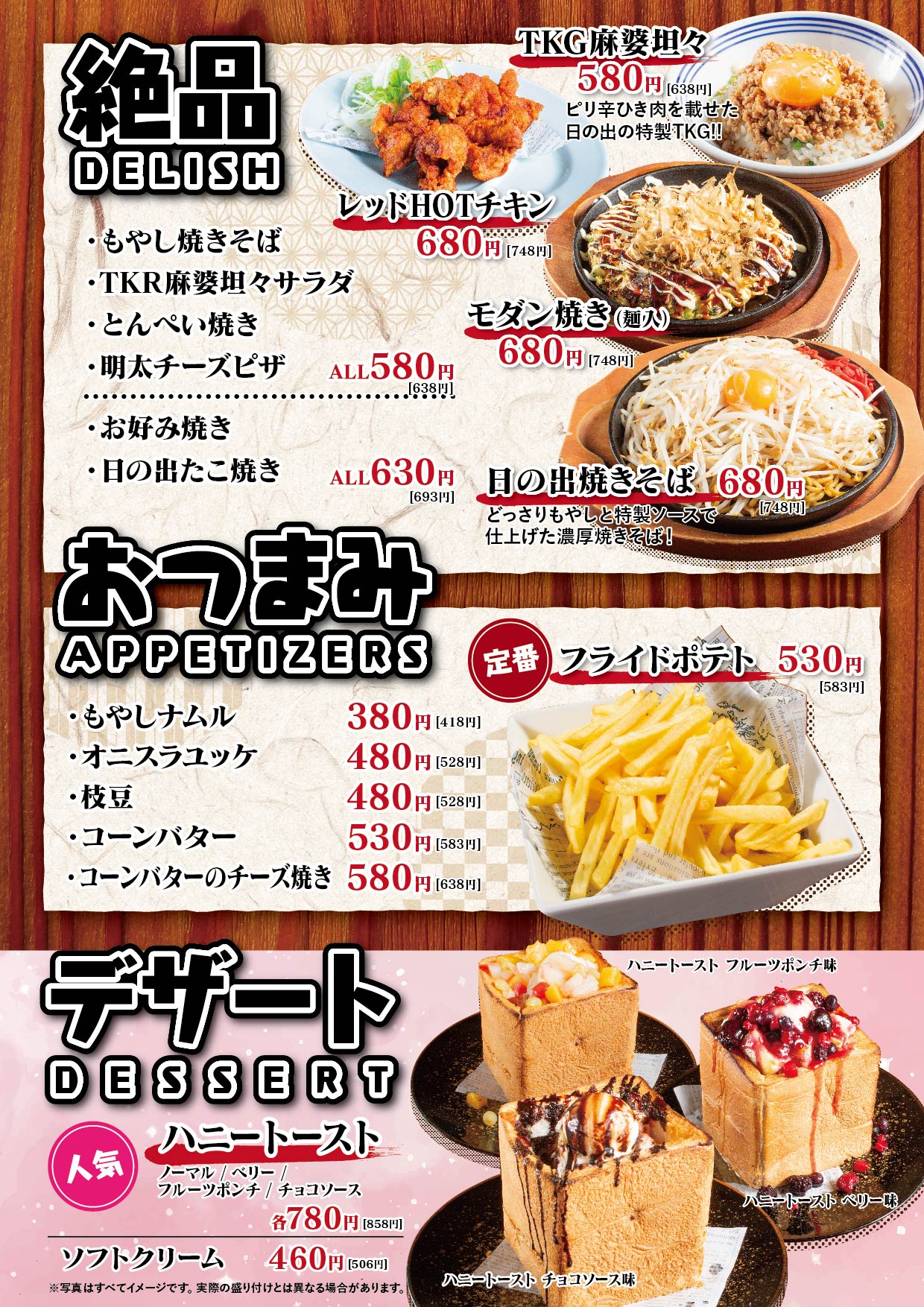 ※メニュー掲載金額はすべて税込金額です ※食材仕入状況によりメニュー内容が変更になる場合がございます